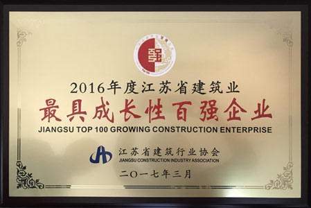 2016 年度江蘇省建筑業(yè)最具成長性百強企業(yè)