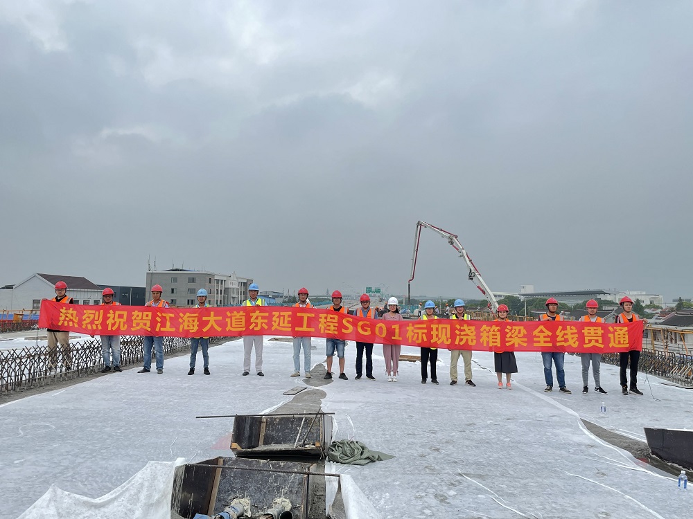 8月24日,我公司承建的江海大道東延工程一標段在全線七個標段中率先完成箱梁合攏貫通。